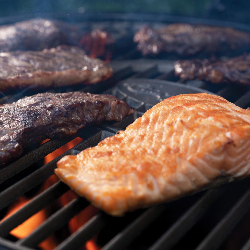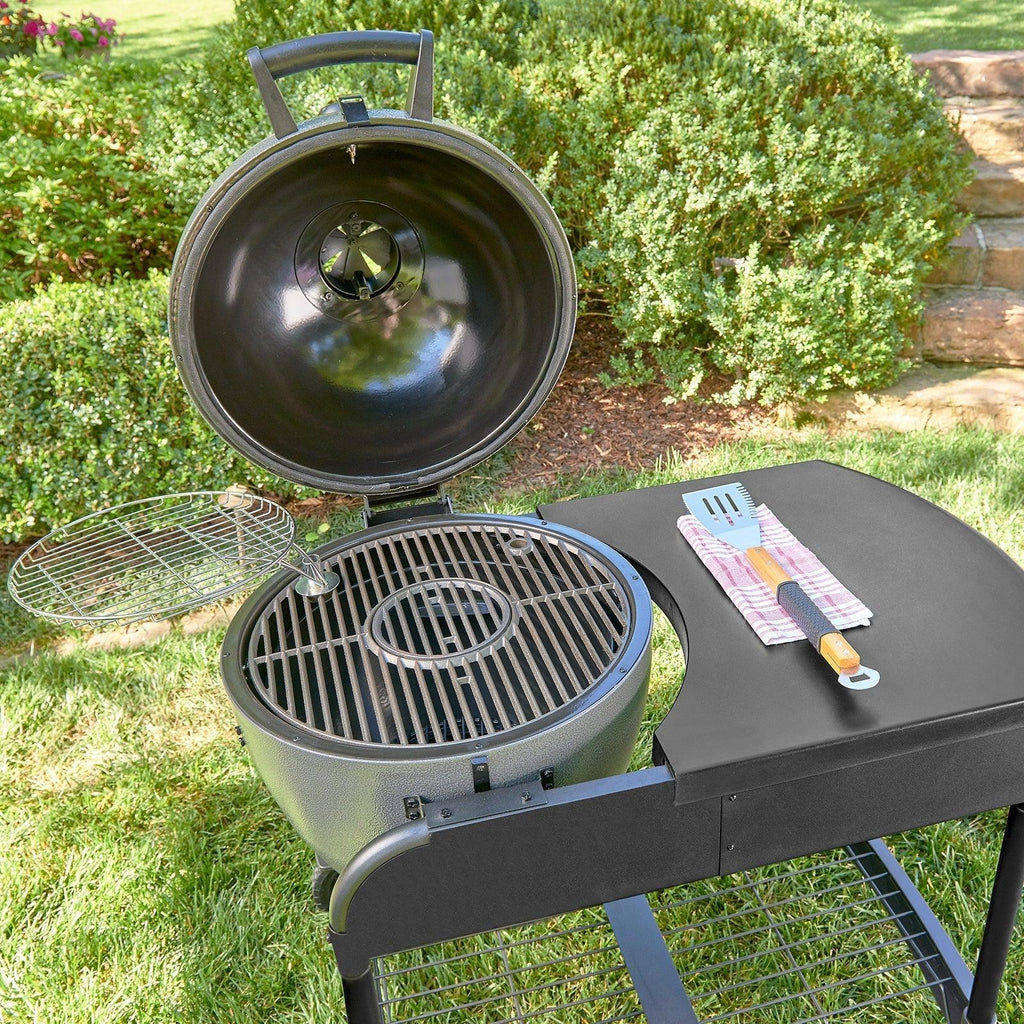 Extras Included: Typically comes with cast iron cooking grates, a removable warming rack, grill grate lifter, and steel side shelves for prep space