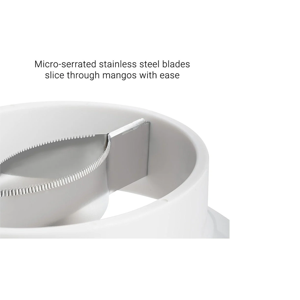 • Micro-serrated stainless steel blades slice through mangos with ease